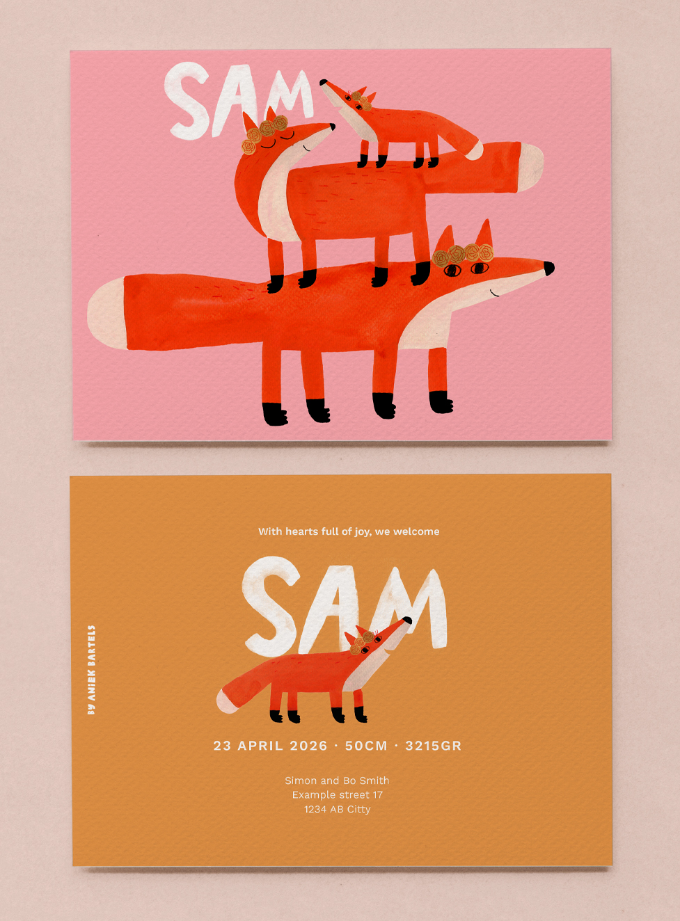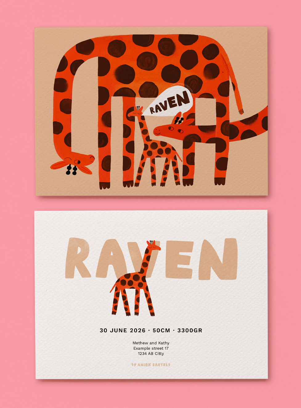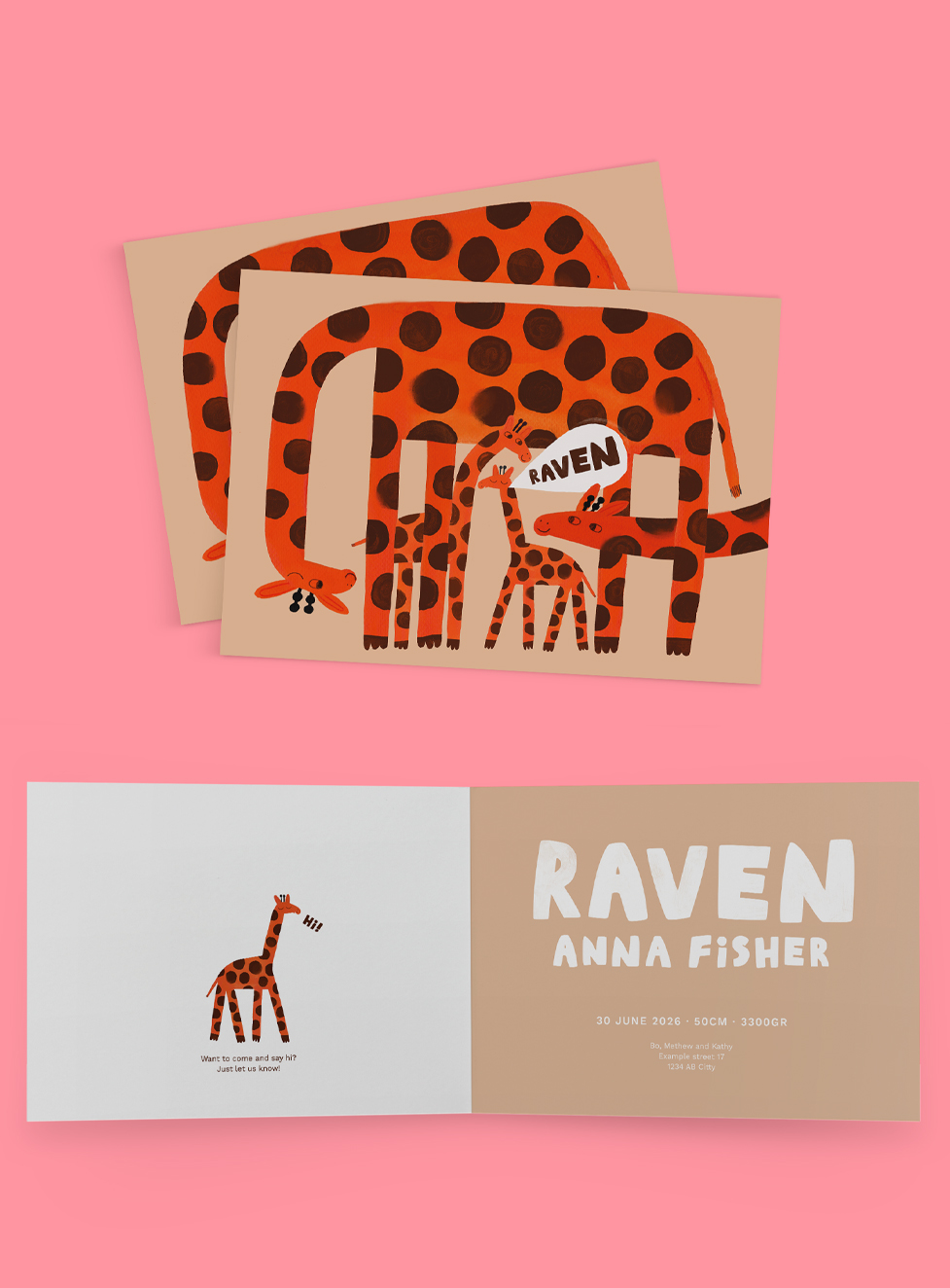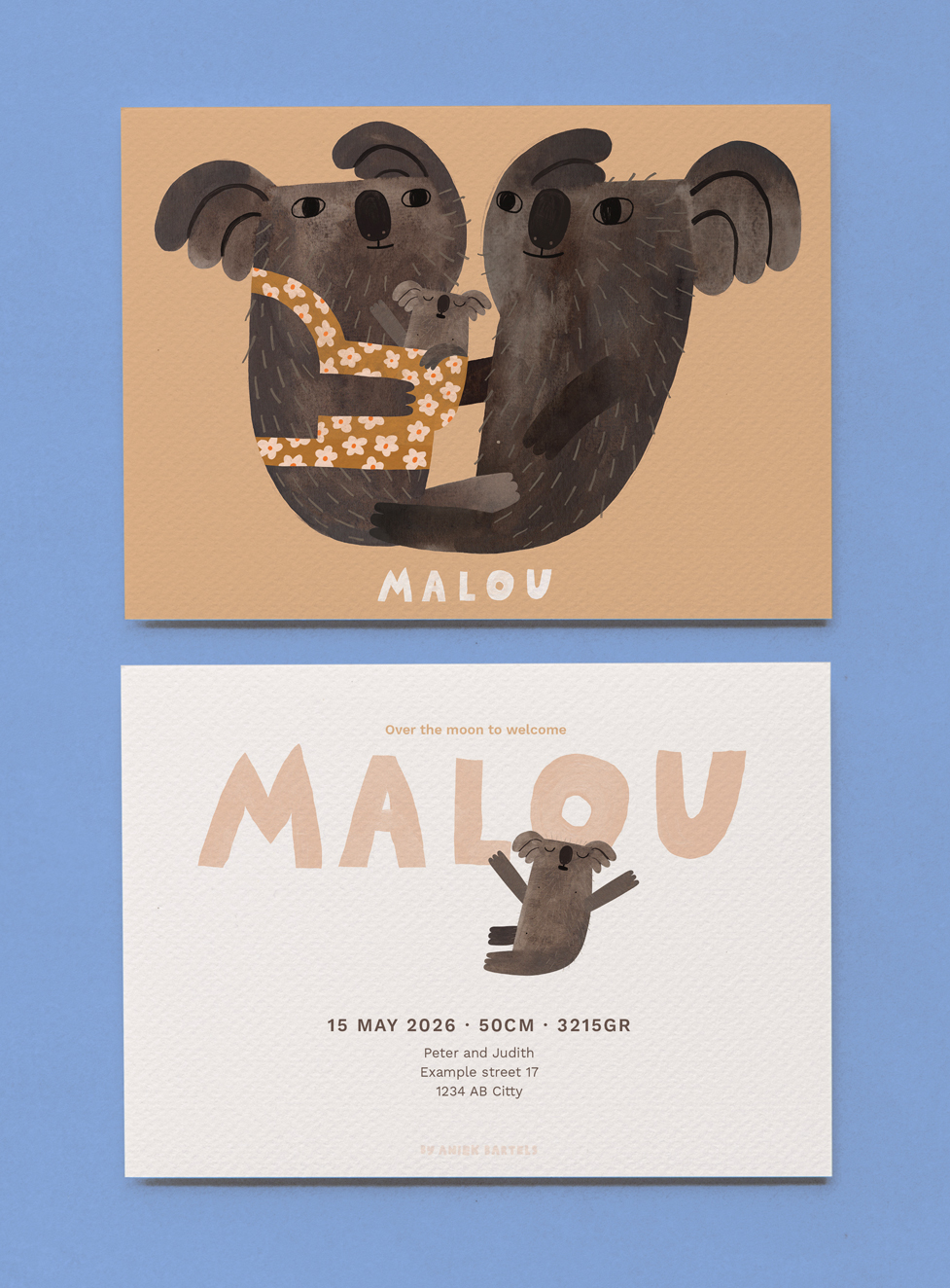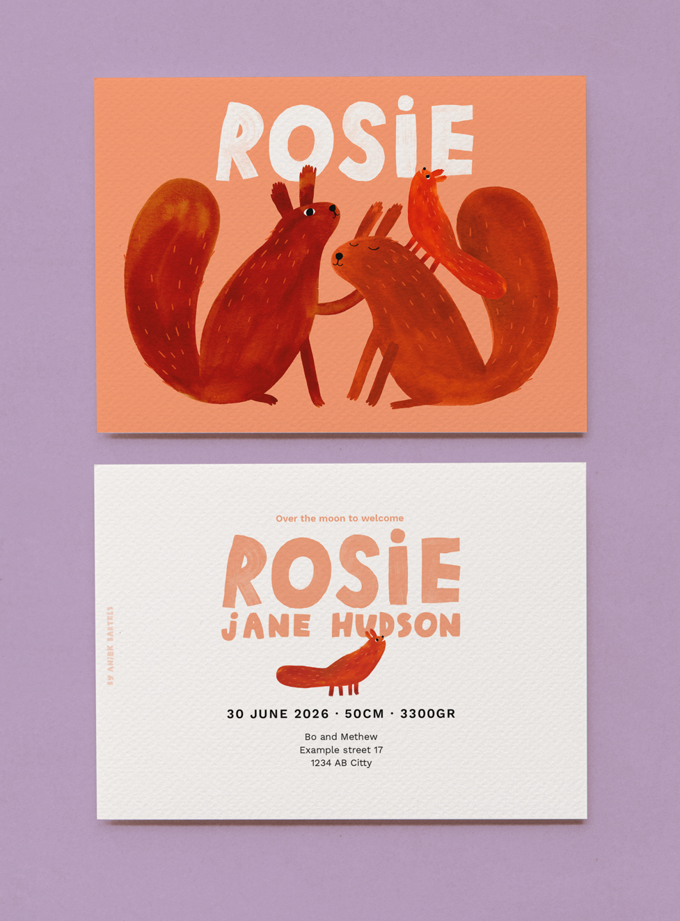 Good News! Many of my cheerful Illustrations are available to use for the most special announcement of your life. Choose your favorite design, enter the name of your newborn child and other details you would like to have on your personal card.