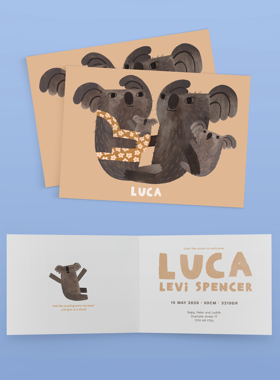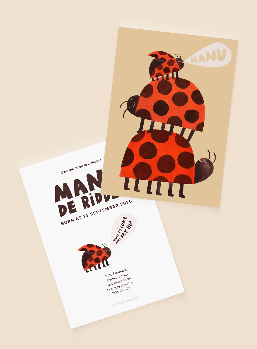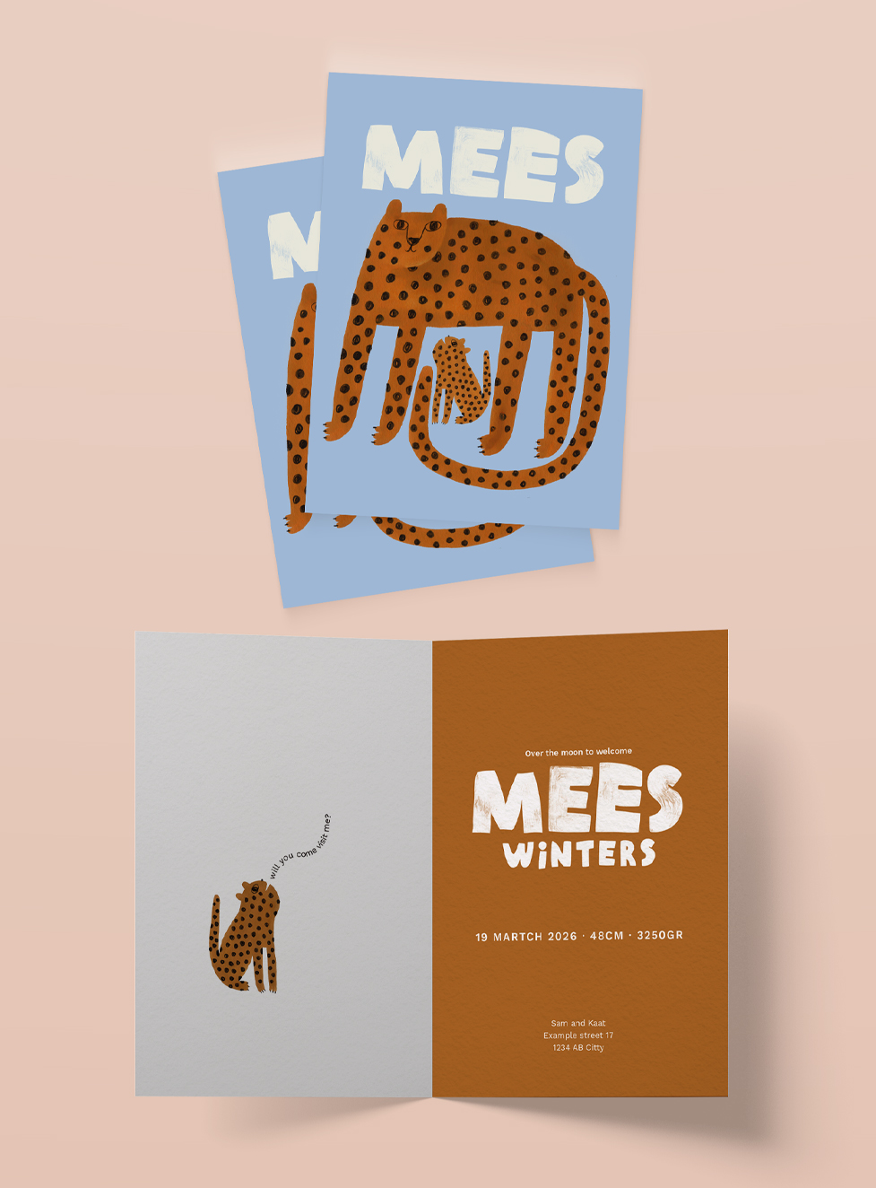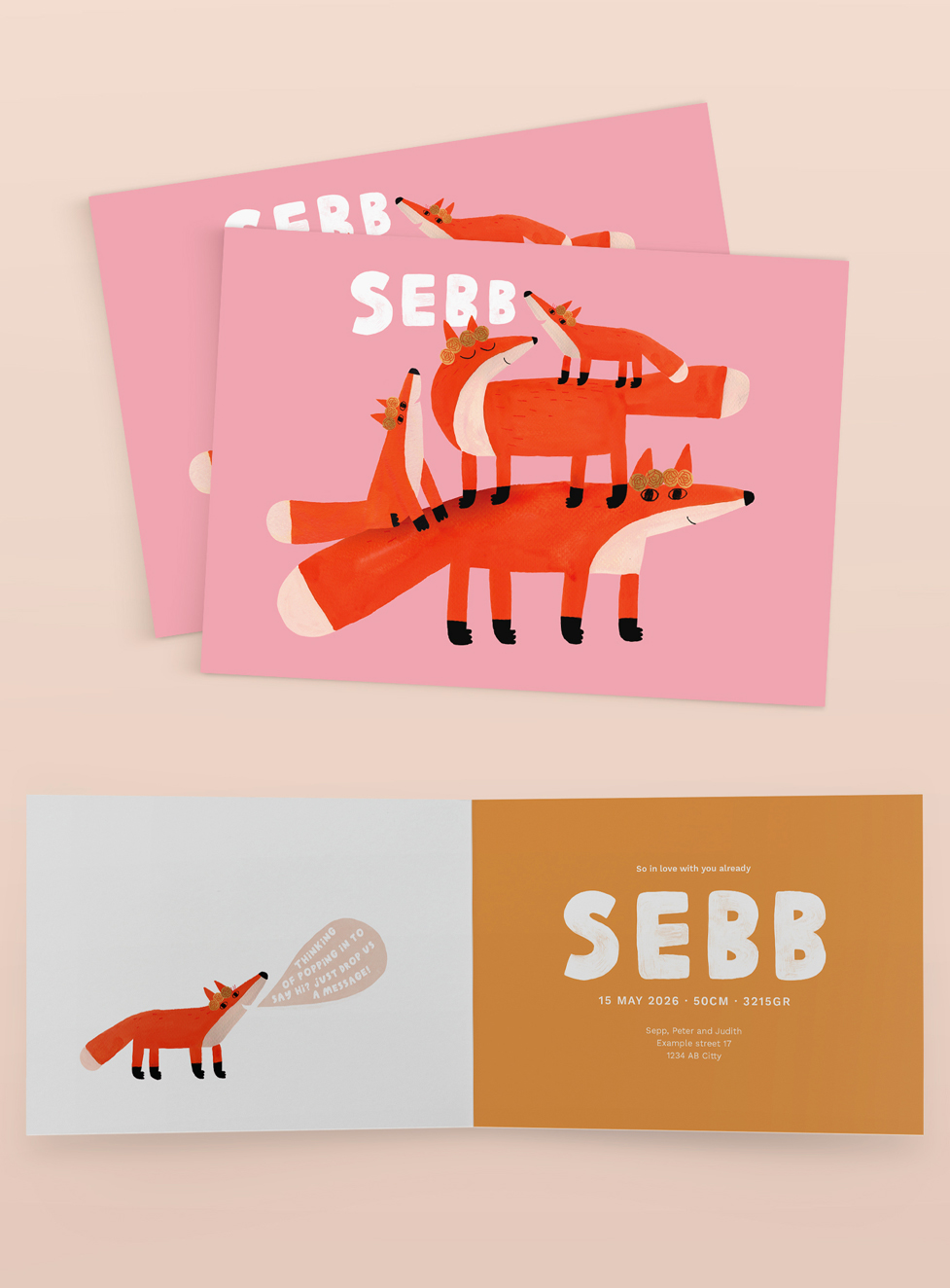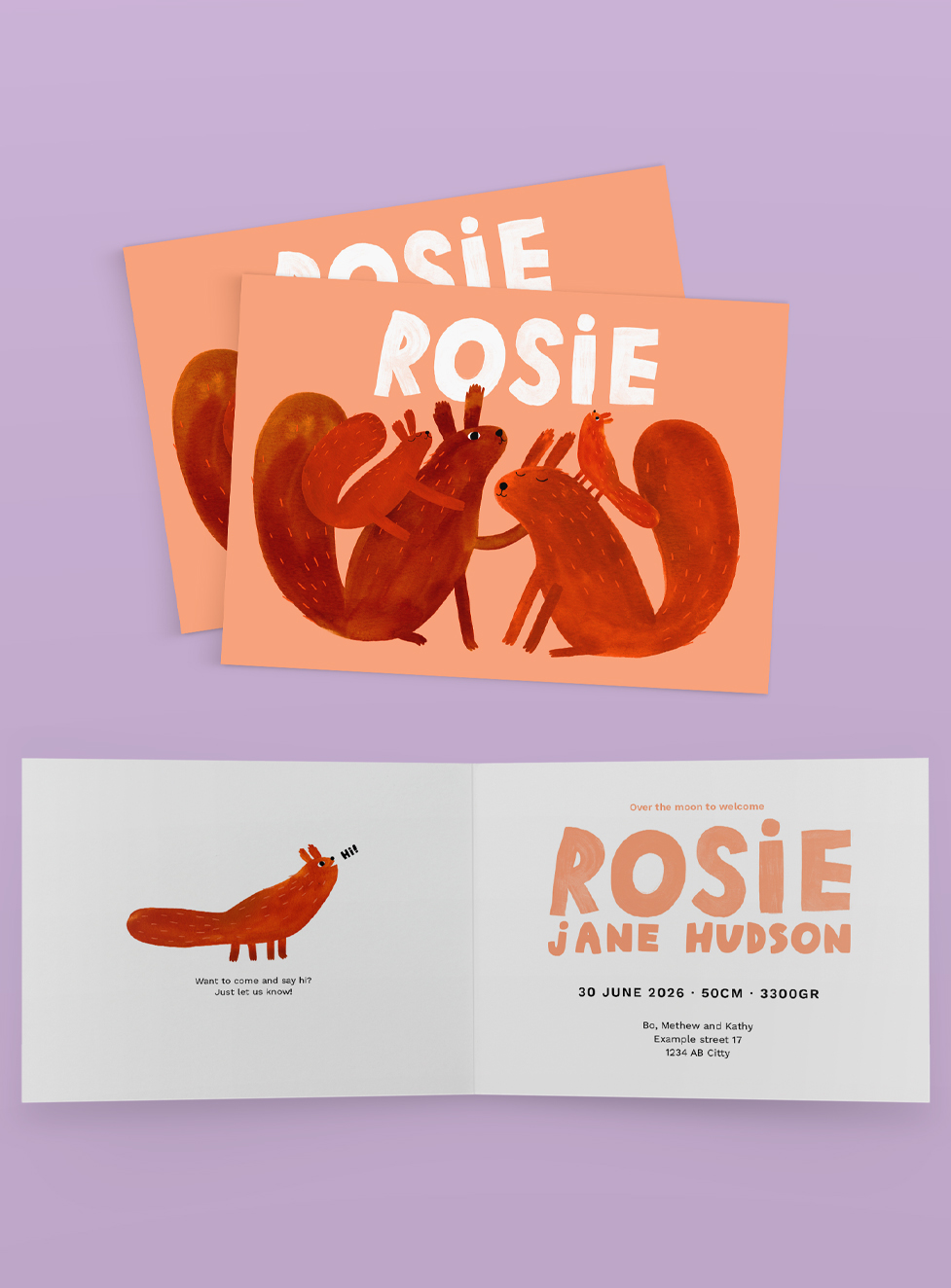 Good News! Many of my cheerful Illustrations are available to use for the most special announcement of your life. Choose your favorite design, enter the name of your newborn child and other details you would like to have on your personal card.